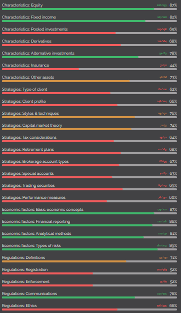 I took the Series 65 back a few months ago and failed it with a 66%. I felt pretty decent taking the test but since then I took a few months off due to personal reasons. I’m looking to start studying again and retake the exam in about a month. I seem to do much better when I have a specific plan to accomplishing tasks. I love how the layout of Achievable is when I’m first starting an exam, but I’m not wanting to reset the entire Series 65 textbook. I was wondering if it was possible to only reset certain sections of the textbook so I can have a specific plan laid out day by day. I would love to completely reset these sections in red, and the orange & green sections I can go in and do a review on my own. If this isn’t possible it’s fine, I can make one on my own, I just didn’t know if there was a way to do that. Thanks in advance!