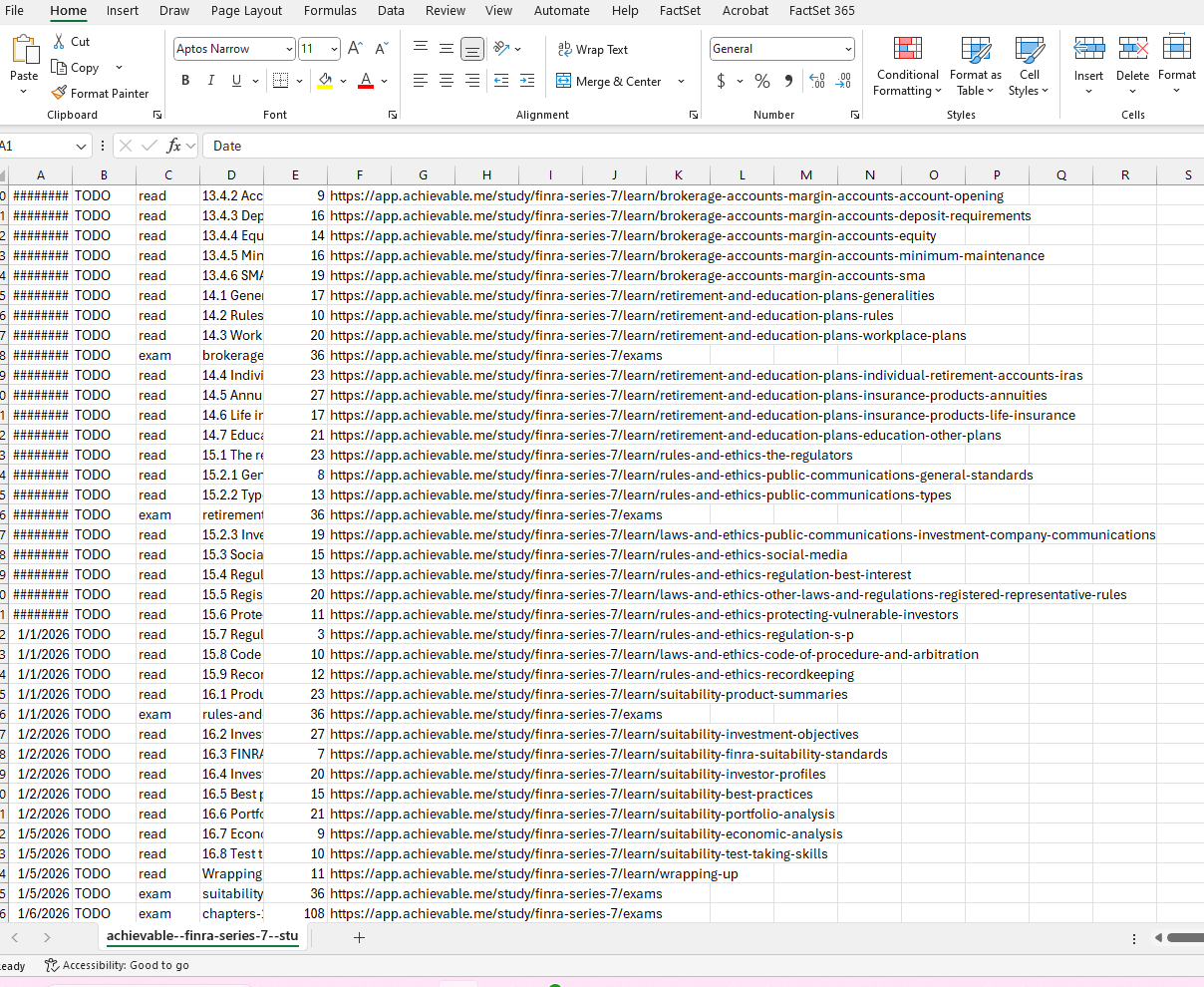 How would you advise what download settings I need to change on my computer in order for it to download in a legible / easier to read & follow format? What settings do I need to change? Or what application do I need to open it under? This is how it looks in excel. I used adobe acrobat to try and convert it/change it, and it is still illegible. Not sure what settings I need to change in order for it to just appear how it does on y’alls website so that I can have a legible hard version of my study calendar without having to recreate one on my own that I can update/change as needed as I go along with my progress and share with my mentors and print.